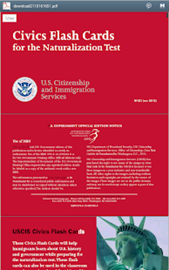 US Citizenship Flash Cards는 Android 애플리케이션으로, Epic Lab Innovations에서 교육 및 참고 카테고리에서 개발한 무료 앱입니다. 이 앱은 천천히 읽고 이해하기 쉬운 100개의 시민권 문제와 답을 포함하고 있습니다. 이 앱은 스페인어 버전도 포함하고 있습니다.